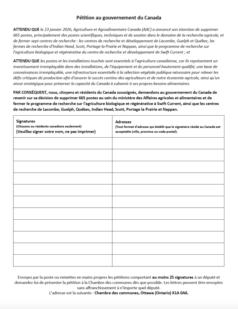 Petition Campaign to Reverse the AAFC Research Cuts!