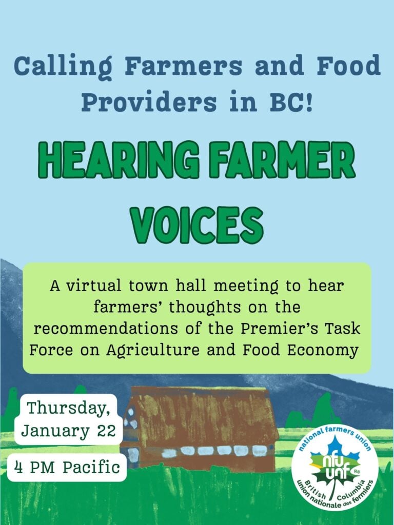 NFU BC invites all farmers and advocates for resilient food systems to join us and share your thoughts. We are a democratic organization of farmers and farmworkers advancing policies that enable food sovereignty. Food sovereignty is, in short, food systems by the people, for the people. If you have a role in feeding our communities, we want to hear from you. We believe that everyone who grows and eats food deserves to have a say in shaping their food systems.